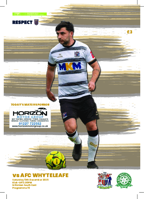 Downloadable Deal Town Matchday programme for Deal Town v AFC Whyteleafe (Isthmian League South East Division) at the Charles Ground on 13th December 2025.